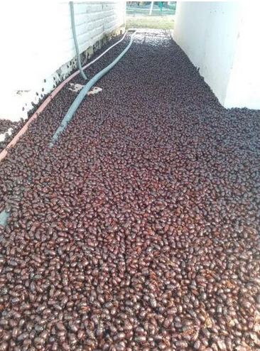 به دلیل گرمای کم سابقه فصل تابستان در کشور آرژانتین، 4 شهر از یک ایالت این کشور به اشغال میلیون ها سوسک کرگدنی درآمد.