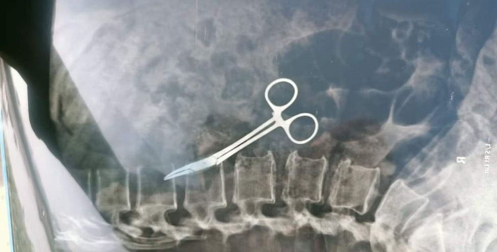 او توضیح داد: اخیراً وقتی او به ما مراجعه کرد، درخواست عکسبرداری با اشعه ایکس کردیم که در نهایت وجود قیچی داخل شکم او مشخص شد.