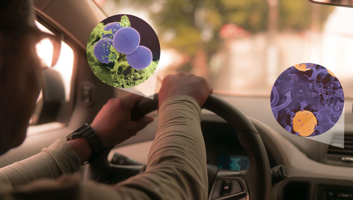 Carrentals در گزارش تحقیقاتی خود نشان میدهد که سطوح CFU روی فرمان داخل خودروها بالاترین میزان است. به طور متوسط، 629 CFU روی فرمان یافت شد که برای مثال اگر این را با گوشی خود مقایسه کنید، شش برابر بیشتر از گوشی شما