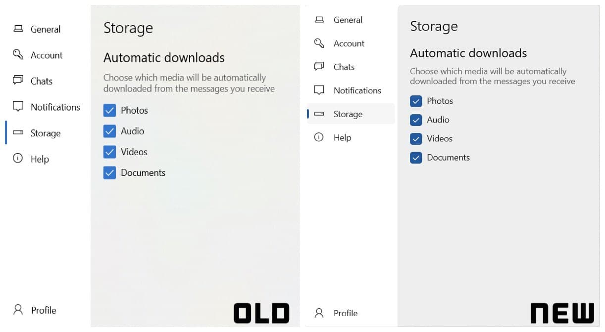 FireCube، منبع منتشرکننده اخبار ویندوز در توییتر به این نسخه جدید اشاره کرد و همچنین تصاویری از آن را به اشتراک گذاشت که تفاوت بین نسخه جدید و قدیمی واتساپ را نشان میدهند.