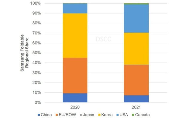 از لحاظ فروش منطقهای هم احتمالا غافلگیر خواهید شد بشنوید در کشور کرهی جنوبی، میزان فروش گوشیهای تاشو از مجموع اروپا و آمریکا هم بیشتر است در حالی که میزان محبوبیت گوشیهای تاشو از سال ۲۰۲۰ تاکنون در آمریکا بسیار پیشرفت کرده و انتظار میرود به این روند رو به رشد هم ادامه دهد.