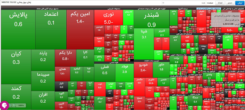 در مقابل شاخص کل فرا بورس با ۸۴ واحد کاهش در رقم ۱۷ هزار و ۶۶۵ واحد ایستاد. در این بازار ۱۷۲ هزار معامله به ارزش ۲۹ هزار و ۷۰۵ میلیارد ریال انجام شد. پتروشیمی زاگرس ، زنگ آهن گهر زمین، شرکت آهن و فولاد اربع و صنعتی مینو نسبت به سایر نمادها بیشترین تاثیر منفی و در مقابل بهمن دیزل و بیمه اتکایی ایرانیان نسبت به سایر نمادها بیشترین تاثیر مثبت را روی فرابورس گذاشتند.