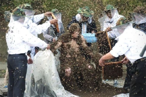 آقای گائو بینگلو هزاران زنبور را روی بدنش نشاند تا با این کار عجیب و خطرناک اسمش وارد گینس شود؛ البته اینکه برای یک رکورد چقدر نیش را تحمل کرد نمیدانم.