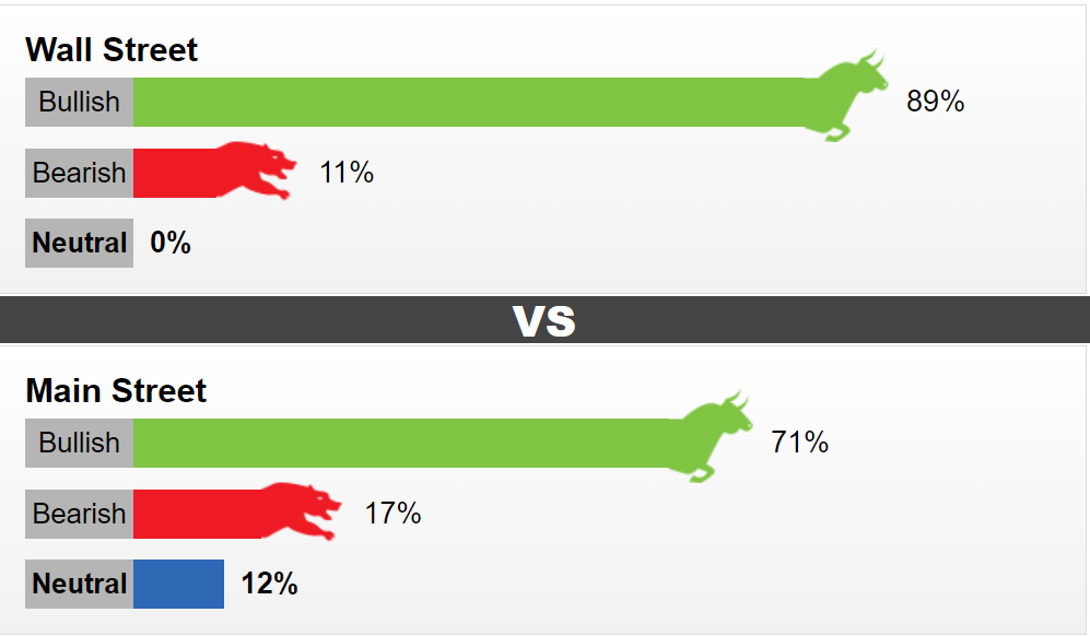 این نظرسنجی نشان میدهد که احساسات سرمایهگذاران خرد در بالاترین سطح خود از اواسط نوامبر است که آخرین باری بود که قیمت طلا در سطح فعلی بود. در همین حال، احساسات صعودی در میان تحلیلگران بازار نیز به بالاترین سطح خود از ماه می 2018 رسیده است.