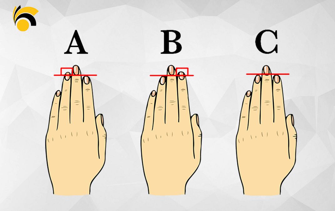 چناچه شکل دستان شما شبیه عکس A است این بدان معناست که شما بسیار جذاب هستید و بسیار قاطع و در شرایط خطر دارای روحیه ای تهاجمی می باشید. ظاهرا افرادی که انگشت انگشتری آنها بلندتر است ، وضعیت مالی بهتری دارند. همچنین بهتر است این افراد توانایی های ورزشی خود را افزایش دهند. همه این صفات به احتمال زیاد به دلیل افزایش قبل از تولد از تستوسترون است.شخصیت شناسی از روی انگشتان