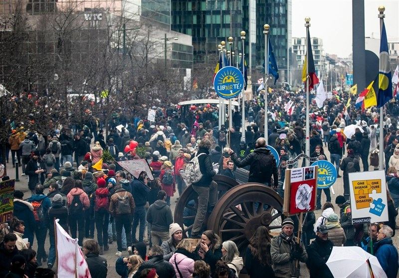 بر اساس اطلاعات پلیس در بروکسل حدود 50 هزار نفر علیه قواعد و محدودیت های کرونایی اعتراض کردند که بعضا با خشونت و درگیری هایی همراه بود. 6 نفر هم به دلیل همراه داشتن وسایل خطرناک و ممنوعه دستگیر شدند.