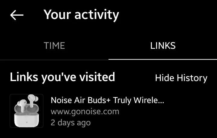 در صفحه بعد، لیست کاملی از تمام پیوندهایی که روی آنها کلیک کرده اید ظاهر میشود. در این بخش تصویر کوچک مرتبط با لینک، زمان، عنوان و پیوند هر صفحه وب را به شما نشان داده میشود. اگر میخواهید پیوندی را دوباره مشاهده کنید، کافی است روی آن ضربه بزنید تا آن صفحه در مرورگر داخلی اینستاگرام باز شود.