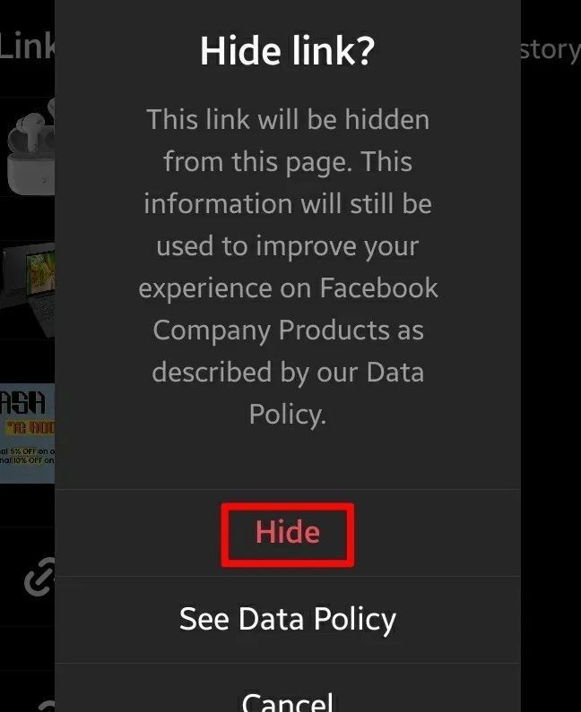 برای مخفی کردن پیوندها نیز فقط لازم است که برای مدتی دست خود را روی لینک مورد نگه دارید و از پنجرهای که ظاهر میشود، گزینه Hide را انتخاب کنید. به یاد داشته باشید که این گزینه فقط پیوند را از بخش فعالیت شما پنهان میکند.