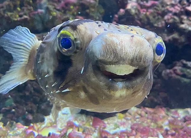 یک ماهی پفی به دندانپزشکی برده شد تا دندان‌هایش که مانع از غذا خوردنش شده بود، جراحی شود.