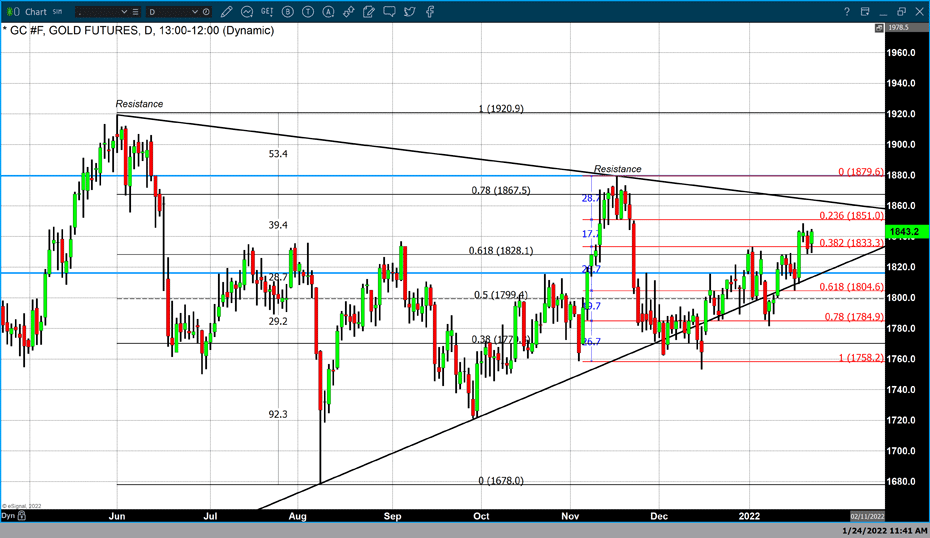 طلا برای ادامه روند صعودی خود نیاز دارد تا ابتدا بالاترین سطح دوماهه خود در عدد 1848 دلار که به عنوان یک مقاومت کلیدی عمل می کند را پشت سر بگذارد. عبور از این مقاومت طلا را به سمت دو مقاومت بعدی خود 1851 و 1879 دلار سوق خواهد داد که عبور از آن ها می تواند دروازه ورود برای حرکت به سمت سطح 1900 دلاری باشد.