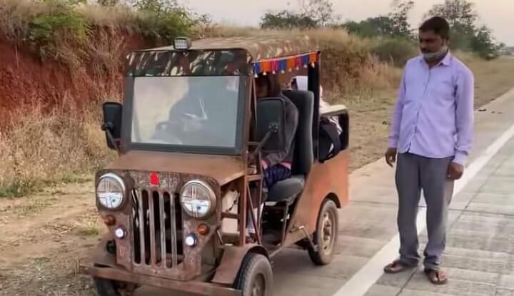 مرد با استعداد هندوستانی که با آهن های قراضه یک خودروی جیپ ساخته بود از کارآفرین شهیر این کشور جایزه ای ارزنده دریافت کرد.