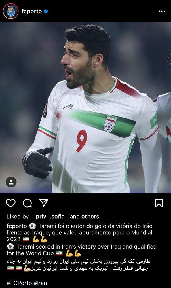 پس از این بازی، صفحه اینستاگرام باشگاه پورتو با انتشار تصویری از طارمی مهاجم ایرانی صدرنشین جدول رده‌بندی لیگ پرتغال نوشت: «طارمی در پیروزی ایران مقابل عراق گلزنی کرد و راهی جام جهانی شد».