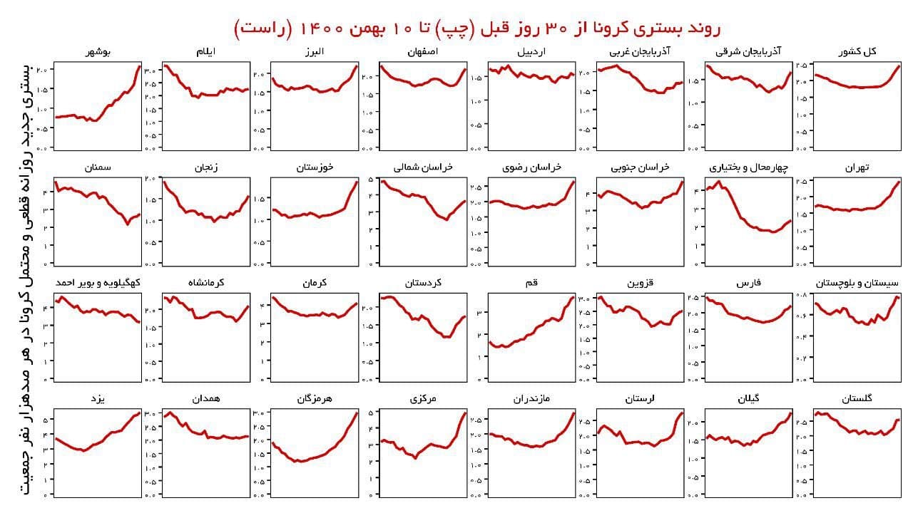­هم‌اکنون روند بستری کرونا در اکثر استان‌ها به شدت رو به افزایش است.
