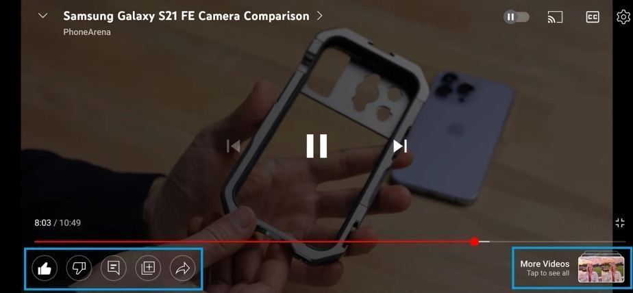 اگر هنگام مشاهده یک ویدیوی YouTube گوشی خود را به حالت افقی تبدیل کنید و دکمه مکث را فشار دهید، متوجه چیز جدیدی خواهید شد.