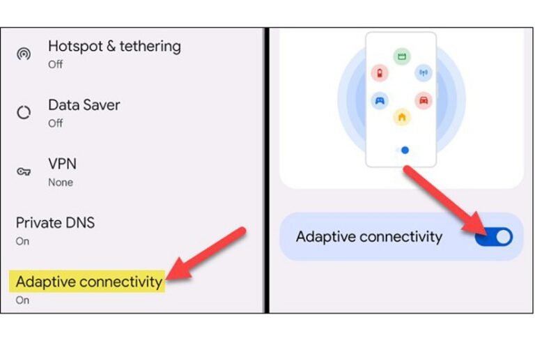 به عنوان آخرین راهحل بد نیست نگاهی به تنظیمات گوشی هوشمند خود بیاندازید. گوشیهای اندرویدی به خصوص برخی از تنظیمات را دارند که میتواند باعث ایجاد مشکل و اختلال در شبکهی Wi Fi شوند. این تنظیمات باید مفید واقع شوند، اما این همیشه اینطور نیست. به عنوان مثال، گوشیهای هوشمند گوگل پیکسل دارای یک ویژگی به نام «Adaptive Connectivity» در بخش تنظیمات «Network & Internet» هستند.