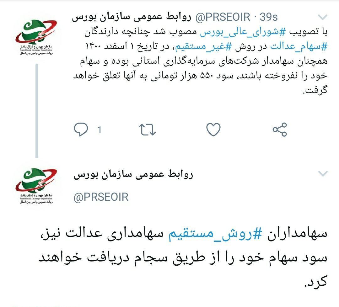 به گزارش سایت طلا،با تصویب شورای عالی بورس مصوب شد چنانچه دارندگان سهام عدالت در روش غیرمستقیم، در تاریخ ۱ اسفند ۱۴۰۰ همچنان سهامدار شرکتهای سرمایهگذاری استانی بوده و سهام خود را نفروخته باشند، سود ۵۵۰ هزار تومانی به آنها تعلق خواهد گرفت.