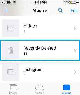 مرحله ۲ - اکنون پوشه Recently Deleted را پیدا کرده و تصاویر گمشده Insta را بررسی کنید.
