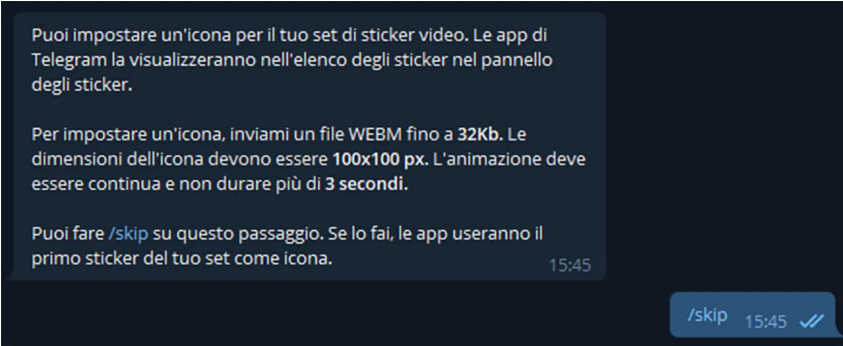 این مرحله اختیاری است و میتوانید از آن صرف نظر کنید. تصویر باید با فرمت WEBM، با ابعاد ۱۰۰ در ۱۰۰ پیکسل، حداکثر مدت زمان ۳ ثانیه و ابعاد حداکثر ۳۲ کیلوبایت باشد.