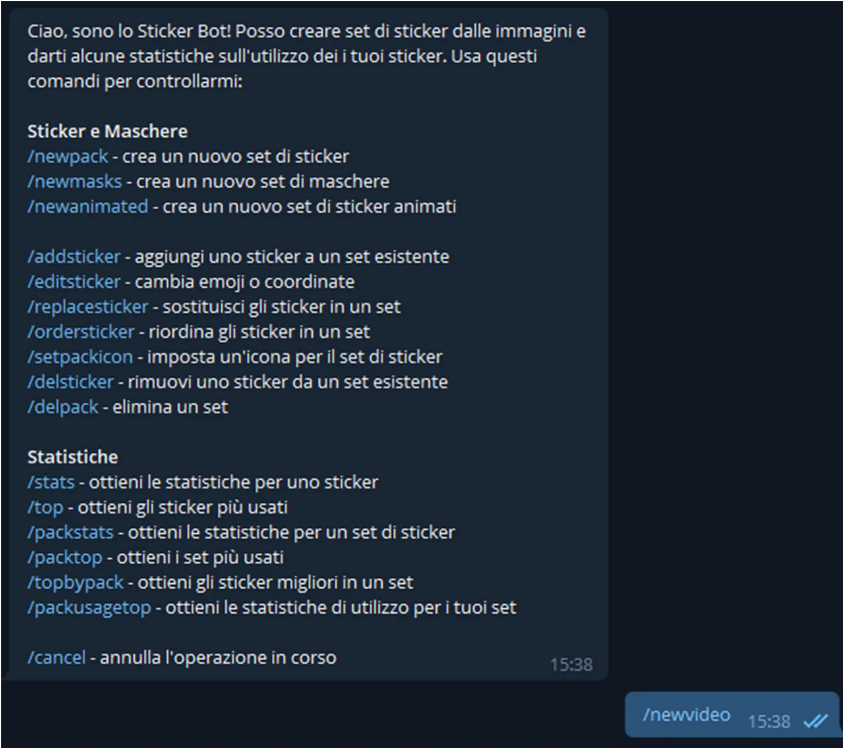 دستور / newvideo را تایپ کرده و ارسال کنید.