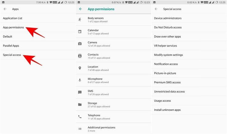 برنامههای اندرویدی برای دسترسی به دوربین، فضای ذخیرهسازی و ویژگیهای مختلف گوشی شما در ابتدا از شما درخواست مجوز میکنند. با این حال، همیشه اینطور نیست. برنامهها میتوانند به تنهایی و بدون اطلاع یا رضایت شما از چندین مجوز استفاده کنند. به همین دلیل است که باید به طور مرتب مجوز برنامههای خود را بررسی کنید. میتوانید از قسمت Settings و سپس Apps به مجوزهای برنامههای دستگاه خود دسترسی پیدا کنید. مجوزهای ضروری را نیز میتوانید در قسمت Special access بررسی کنید.