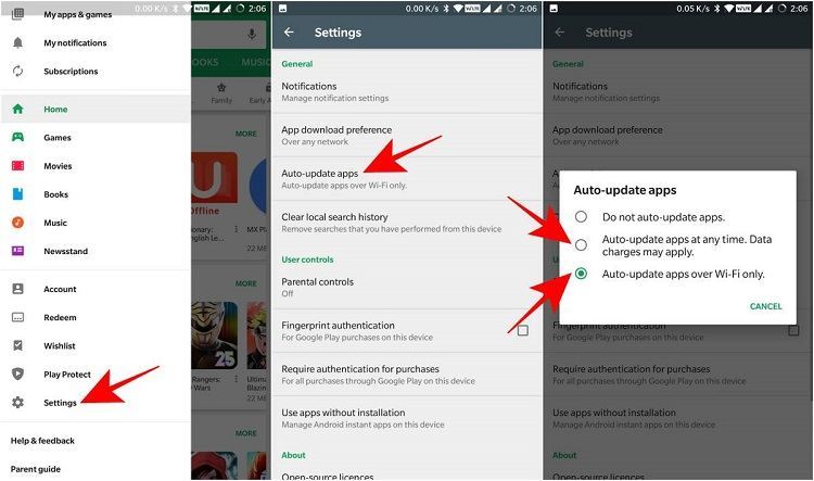 یک سیستم به روز نشده، به لطف آسیب پذیریهای احتمالی، بیشتر در معرض خطر هک میباشد. برای بررسی سیستم خود میتوانید از SnoopSnitch استفاده کنید. این موضوع درباره یک اپلیکیشن قدیمی و بروزنشده نیز صدق میکند. یک اپلیکیشن بروزنشده میتواند توسط هکرها برای دسترسی به اطلاعات گوشی شما مورد سو استفاده قرار بگیرد؛ بنابراین توجه داشته باشید که حتما سیستم و اپلیکیشنهای خود را به روز نگه دارید. در صورتی که از پلی استور استفاده میکنید، وارد قسمت Settings و سپس Auto-update apps شوید و بروزرسانی خودکار برنامهها را فعال کنید.