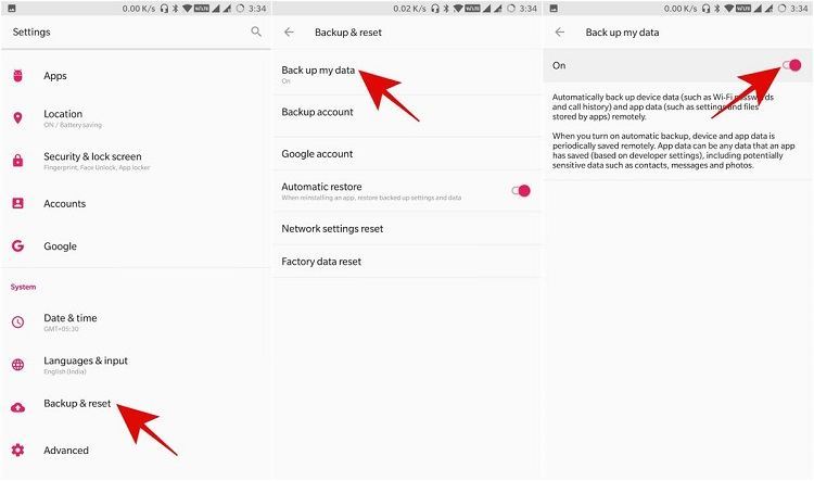 Super Backup & Restore یکی از بهترین اپلیکیشنهای پشتیبانگیری برای اندروید است، اما نمیتواند از دادههای برنامه نسخه پشتیبان تهیه کند. گوگل همچنین گزینههایی برای پشتیبانگیری از دادههای برنامه، سابقه تماس، مخاطبین و تنظیمات ارائه میدهد که میتوانید آن را از قسمت Settings> Backup and Reset> Backup My Data فعال کنید.