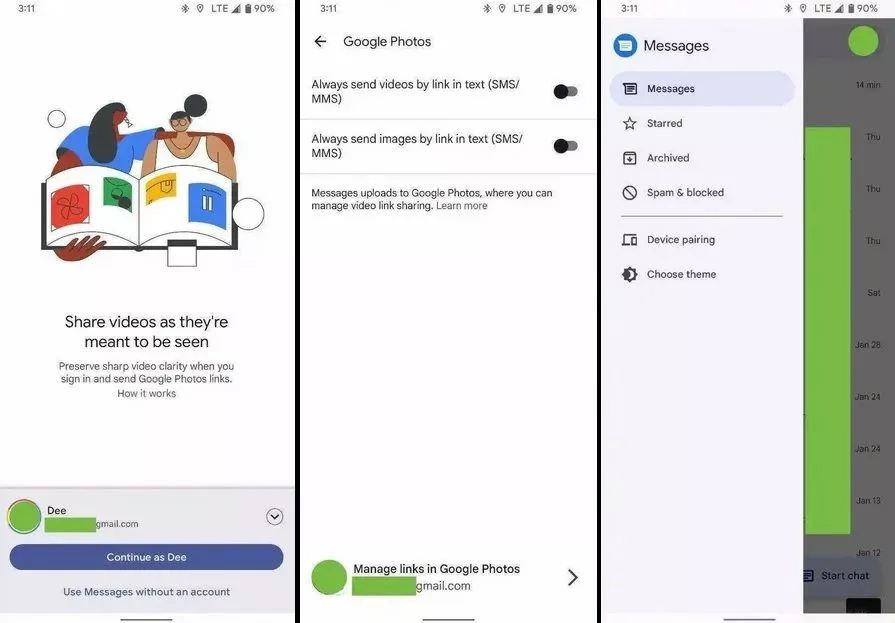 کاربران برای ارسال ویدئو و تصاویر موردنظر چند انتخاب در دسترس خواهد داشت که از جمله میتوان به گزینهای اشاره کرد که هنگام اشتراکگذاری ویدئو در گوگل مسیجز، همیشه پیوندی را به Photos ارسال میکند. با فعال کردن این گزینه و ارسال پیوند ویدئو یا تصاویر موردنظر، دریافتکنندهی پیام قادر خواهد بود محتوای موردنظر را با کیفیت بالا دریافت کند.