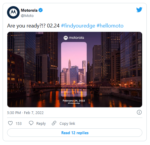 موتورولا در توئیتی خبر از عرضه یک گوشی هوشمند در تاریخ ۲۴ فوریه داد.