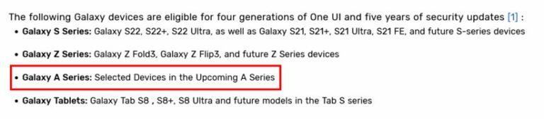 اگرچه در بیانیه‌ای که سامسونگ برای رسانه‌های آمریکایی منتشر کرده به چنین چیزی اشاره‌ای نشده است، اما در بیانیه‌ی منتشر شده از طرف نمایندگی سامسونگ در هلند به این موضوع پرداخته شده است. طبق این بیانیه، تعدادی از گوشی‌های سری گلکسی A از سیاست جدید سامسونگ برای به‌روزرسانی بهره‌مند می‌شوند. اگر این موضوع صحت داشته باشد، رضایت کاربران گوشی‌های موردنظر به طور قابل توجهی افزایش پیدا خواهد کرد.