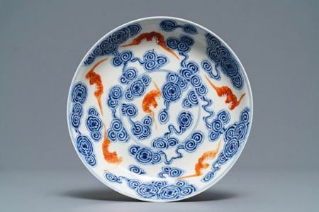 خفاشهای قرمز تاریخچهای طولانی میان نمادهای چینی دارند؛ به ویژه اگر خفاشهای قرمز در دستههای پنجتایی ظاهر شوند. پنج خفاش نشانگر پنج نعمت در فرهنگ چین هست که شامل زندگی طولانی، ثروت، سلامت، عشق و مرگ آسان میشود. یک خفاش قرمز به خودی خود، یک طلسم محسوب میشود و باور عمومی بر این است که شیطان را از هر کسی دور میکند. در تصویر زیر، پنج خفاش دور نماد طول عمر حلقه زدهاند.
