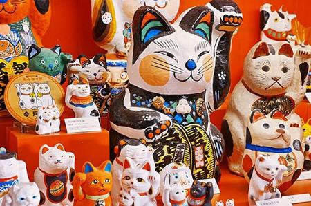 مجسمههای مانکی نکو (Maneki-neko) که یک پنجه خود را بالا گرفته است، نگاه دیگران را به سمت خود جلب میکند، چه آنجا یک رستوران باشد، چه یک فروشگاه یا حتی یک معبد، باور بر این است که این گربه مسبب خوش شانسی برای صاحب مکان است.