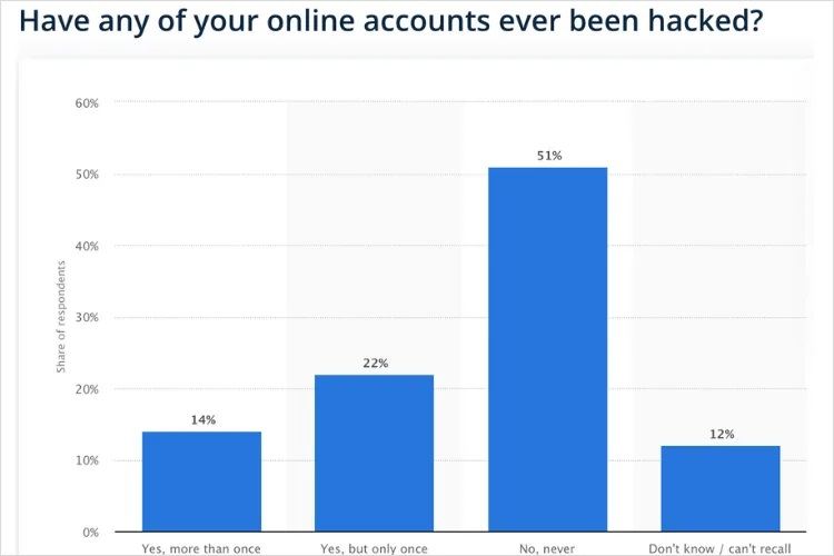 به این نکته توجه داشته باشید که حساب اینستاگرام شما و بسیاری حسابهای دیگر به ایمیل شما پیوند داده شده است؛ بنابراین اگر کسی به ایمیل شما دسترسی داشته باشید، به همهی حسابهای متصل به آن نیز دسترسی خواهد داشت. در یک نظرسنجی که اخیرا برگزار شده است ۲۲ درصد از کاربران اینترنت میگویند حسابهای آنلاین آنها حداقل یک بار هک شده است و ۱۴ درصد نیز گفته اند که اکانت آنها بیش از یک بار هک شده است.