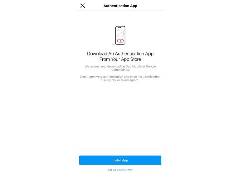 Authentication App یک اپلیکیشن احراز هویت شخص ثالث است. اگر این برنامه را نصب کرده باشید، اینستاگرام به طور خودکار برنامه را پیدا کرده و کدی را برای آن ارسال میکند. شما باید کد را بازیابی کنید، آن را در اینستاگرام وارد کنید و احراز هویت دو مرحلهای فعال میشود. اگر برنامه احراز هویت ندارید، اینستاگرام برنامهای را توصیه میکند که قبل از تکمیل فرآیند آن را دانلود کنید.