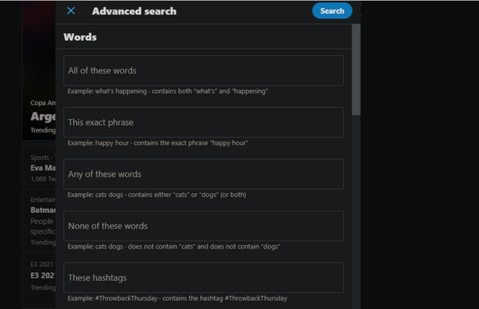 جستجوی پیشرفته توئیتر یک ابزار فوق العاده مفید است که در کمال تعجب نیازی به حساب کاربری برای استفاده ندارد. اگر جستجوی پیش فرض را پیدا نکرد، میتوانید توئیت یا کاربر مناسب را پیدا کنید. شما میتوانید نتایج خود را براساس کلمات یا عبارات کلیدی مرتب کنید، هشتگ اضافه کرده و آنها را بر اساس زبان فیلتر کنید.