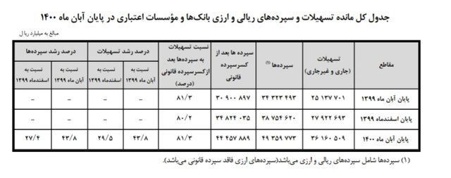 میزان سپردهها و تسهیلات بانکی تا پایان آبان ماه سال جاری نسبت به مقطع مشابه در سال گذشته معادل ۴۳.۸ افزایش یافته است.