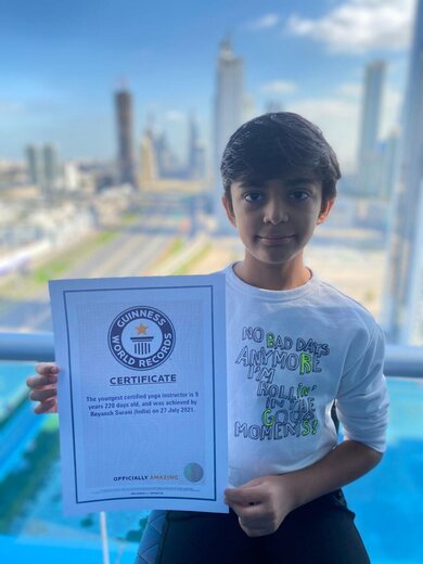 یک پسر هندی پس از اینکه به عنوان «جوانترین مربی یوگای جهان» شناخته شد، در حالی که 9 سال و 220 روز سن داشت، رکورد جهانی گینس را از آن خود کرد.