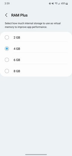 سامسونگ با One UI 4.0 از قابلیت رم مجازی موسوم به رم پلاس رونمایی کرد که به کاربران اجازه میدهد ۴ گیگابایت از حافظه داخلی را به عنوان رم مجازی استفاده کنند. اگرچه این قابلیت به طور پیشفرض برای تمام گوشیهای مبتنی بر این نسخه فعال شده، ولی در زمینهی افزایش یا کاهش این ظرفیت کاربران هیچ کنترلی ندارند. اما حالا در One UI 4.1، انتخاب ۲، ۴، ۶ یا ۸ گیگابایت از ظرفیت حافظه داخلی به عنوان رم مجازی امکانپذیر شده است. اگرچه رم مجازی هر چقدر هم که باشد از لحاظ کیفیت کارایی به اندازهی رم اصلی مفید نخواهد بود اما با این حال میتواند تأثیر محسوسی را در کارهای روزمره خصوصا روی گوشیهایی با میزان رم کم بگذارد.