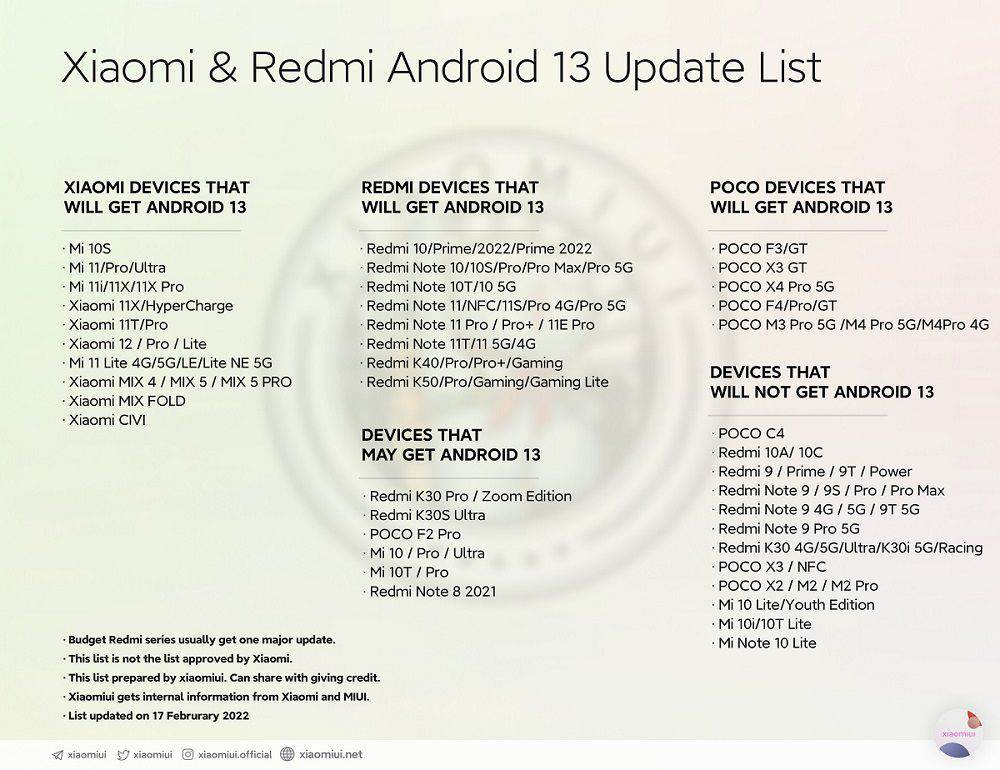 انتشار لیست غیررسمی گوشی‌های شیائومی، ردمی و پوکو که اندروید 13 را دریافت می‌کنند