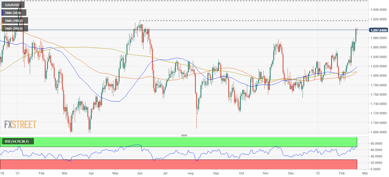 در لحظه نگارش این متن قیمت هر اونس طلای جهانی ۱۸۹۹ دلار است که در بالاترین سطح ۸ ماه اخیر خود قرار دارد. در صورتی که روند صعودی ادامه پیدا کند طلا به سمت نقطه ۱۹۱۶ دلار حرکت خواهد کرد که از ژوئن سال ۲۰۲۱ مشاهده نشده است.