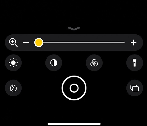 این اپلیکیشن Magnifier نام دارد و بزرگنمایی قابل توجهی را ارائه میدهد تا بتوانید متنهای کوچک را بخوانید و همچنین میتوانید با استفاده از قابلیت هوشمند اپل، چیزهای کوچک را اسکن کنید. علاوه بر این این دوربین دارای فیلترهای رنگی مخصوص برای راحتتر دیدن برخی چیزها است.