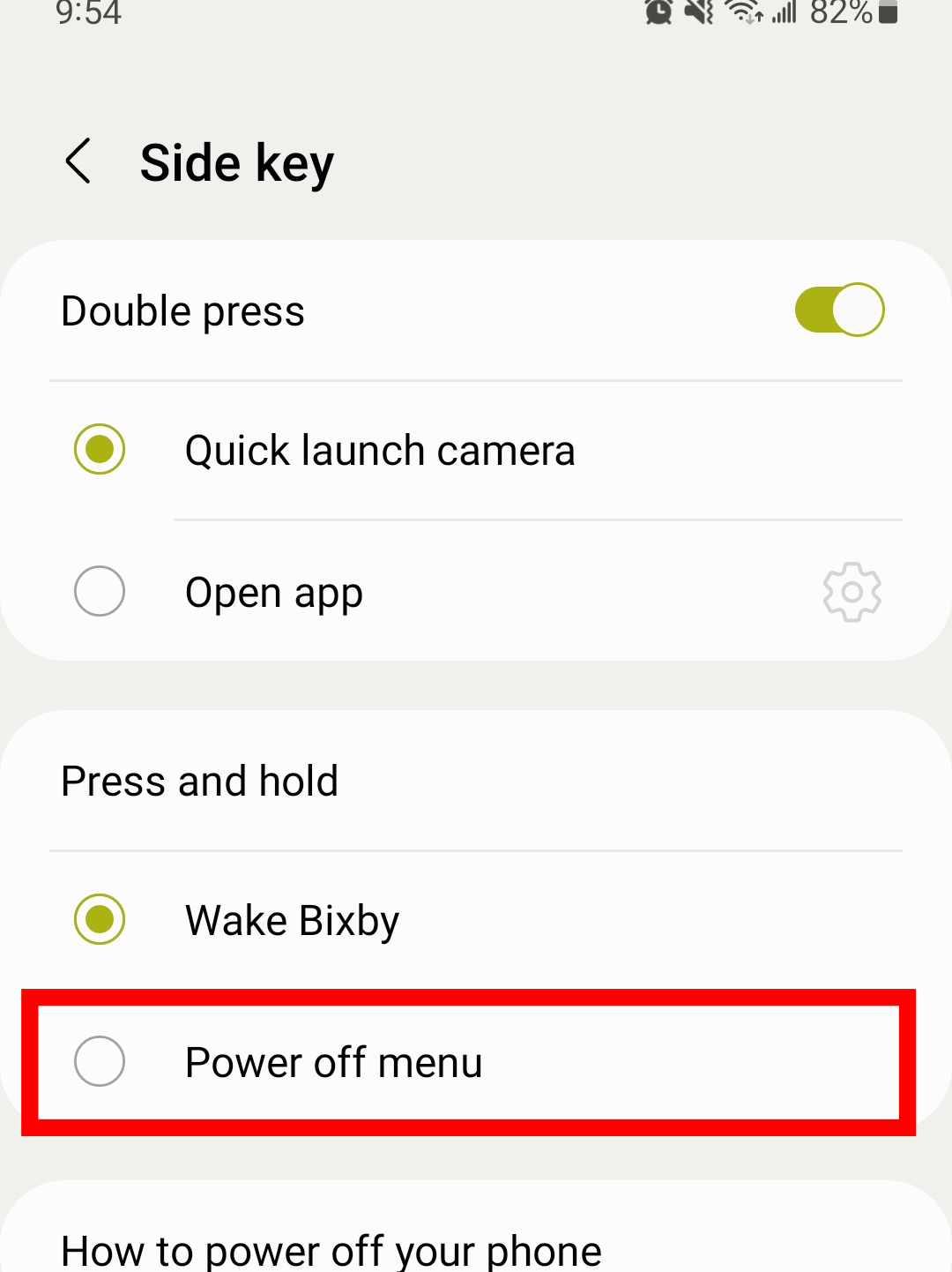 در این گوشی دکمه اختصاصی برای Bixby وجود ندارد. در سایر مدلهای سامسونگ مثل گلکسی اس ۸، اس ۹، اس ۱۰، نوت ۸ و نوت ۹ گزینهای برای روشن و خاموش کردن Bixby وجود دارد. بهطور پیش فرض قابلیت Bixby در جدیدترین گوشیهای شرکت سامسونگ با نگه داشتن کلید کناری فعال میشود. برای غیرفعال کردن دستیار صوتی سامسونگ ابتدا منوی پاور را باز کنید. برای نمایش اعلانها، یک بار انگشت خود را به سمت پایین صفحه اصلی بکشید. با انجام مجدد این حرکت گزینه تنظیمات ظاهر میشود. نماد پاور را در گوشه بالا سمت راست میبینید. اکنون باید روی تنظیمات کلید کناری ضربه بزنید. با فشار و نگه داشتن آن گزینه خاموش کردن را انتخاب کنید.