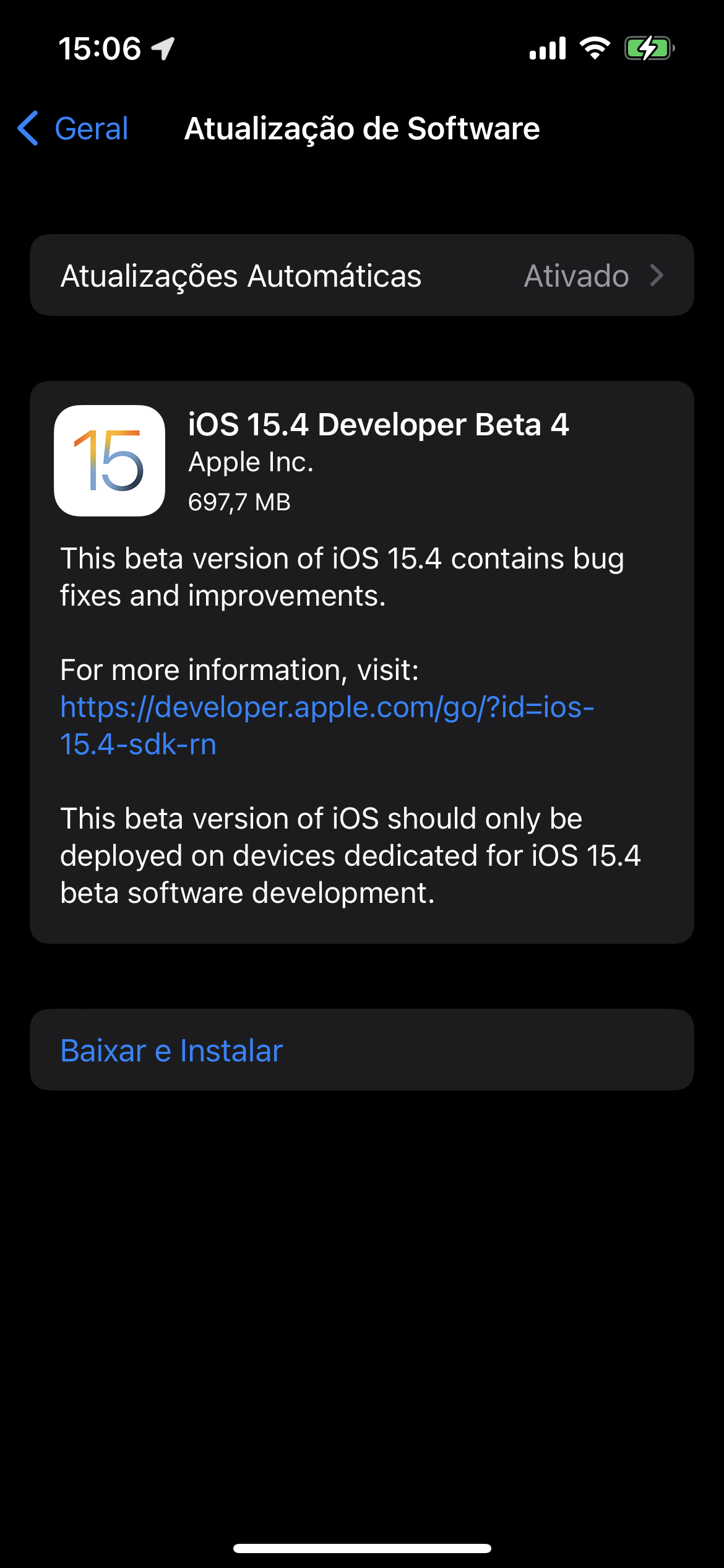 نسخه جدید iOS ۱۵.۴ بتای ۴ به تازگی از طریق یک به روز رسانی در برنامه تنظیمات در دسترس توسعه دهندگان است. طبق معمول، اگر به روز رسانی فوراً برای دانلود ظاهر نشد، به بررسی ادامه دهید، زیرا گاهی اوقات چند دقیقه طول میکشد تا برای همه توسعه دهندگان ثبتنام شده به روز رسانی ارائه شود. شماره ساخت این به روز رسانی iOS ۱۵.۴ beta ۴، ۱۹E۵۲۳۵a است.