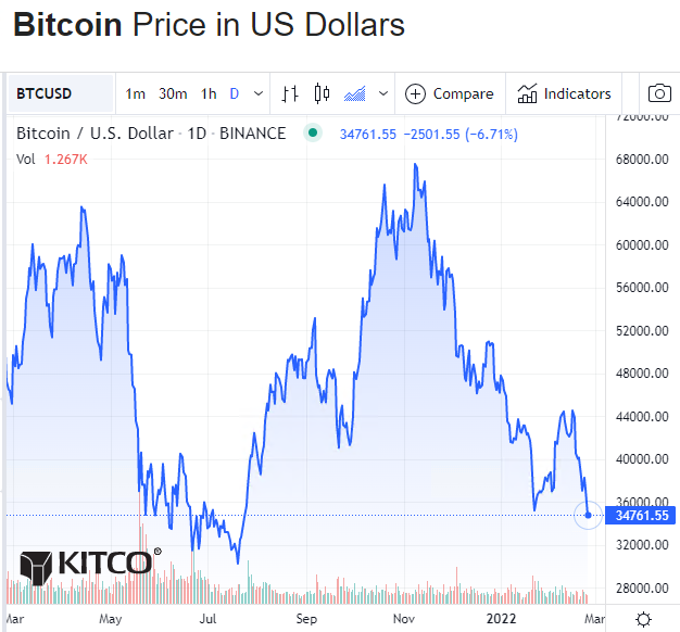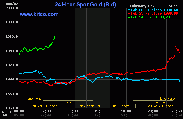 همراه با آغاز حمله روسیه به اوکراین قیمت طلا با یک صعود قدرتمند به سطوح بالاتری دست یافت اما بیت کوین به پایین ترین سطح چند ماه اخیر خود بازگشت.