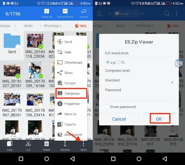 ۵- بعد از اینکه همه کارهای بالا را انجام دادید، روی OK لمس کنید تا فرایند فشردهسازی آغاز شود.