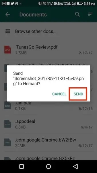 حالا میتوانید فایل فشردهای را که ایجاد کردهاید به عنوان یک سند (document) در واتساپ ارسال کنید. مخاطب شما نیز بعد از دریافت آن میتوانید تصاویر را از حالت فشرده خارج کرده و با کیفیت اصلی آنها را در اختیار داشته باشد (اگر برای فایل خود پسورد گذاشتهاید، حتماً یادتان باشد که پسورد را هم در اختیار مخاطبتان قرار دهید).