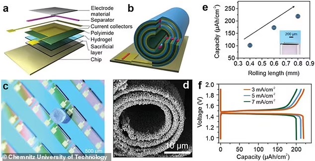 این پیشرفت در فناوری ذخیره انرژی از طریق فرآیندی موسوم به رولت سوئیسی، با الهام از یک دسر معروف اسفنجی و لایه ای ایجاد شد. دانشمندان دستگاه حاصل شده را به عنوان یک میکروباتری استوانه ای خودپیچیده توصیف کردند.