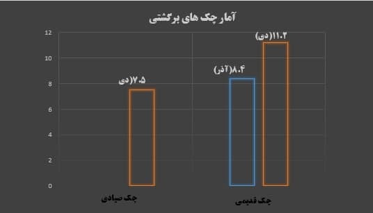 گزارش بانک مرکزی نشان می دهد که در دی، ۷.۵درصد از چک های صیادی نیز برگشت خورده است.