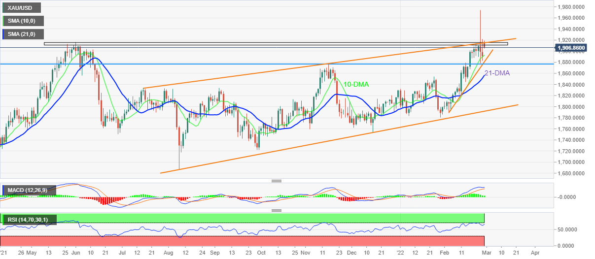 از منظر فنی طلا علیرغم اینکه در هفته گذشته به بالاترین سطح از سپتامبر 2020 صعود کرد، نتوانست یک شکست صعودی قاطع را از کانال صعودی هفت ماهه ایجاد کند.