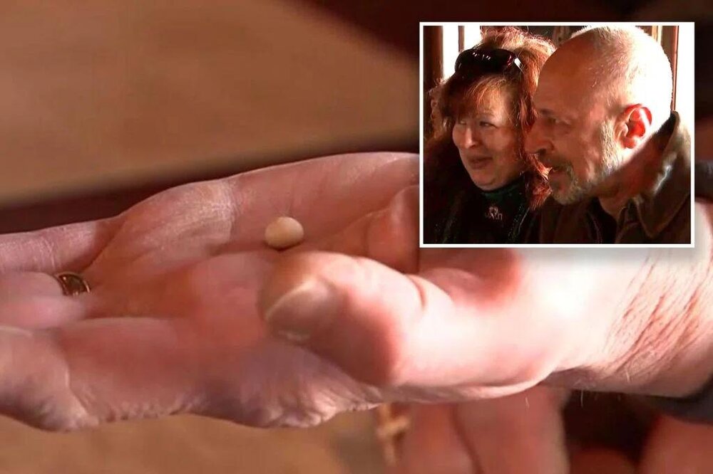 این زوج گفتند وقتی مایکل مروارید 0.35 اینچی را از دهان خارج کرد، شوکه شدند.