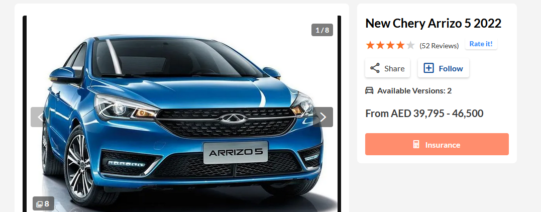بهطور مثال خودروی چری آریزو ۵ که هماکنون توسط نمایندگی رسمی آن در ایران بیش از ۷۰۰ میلیون تومان قیمتگذاری شده، در امارات به قیمت معادل ریالی ۲۸۰ میلیون تومان به فروش میرود، یعنی همقیمت سمند صفر در بازار ایران!
